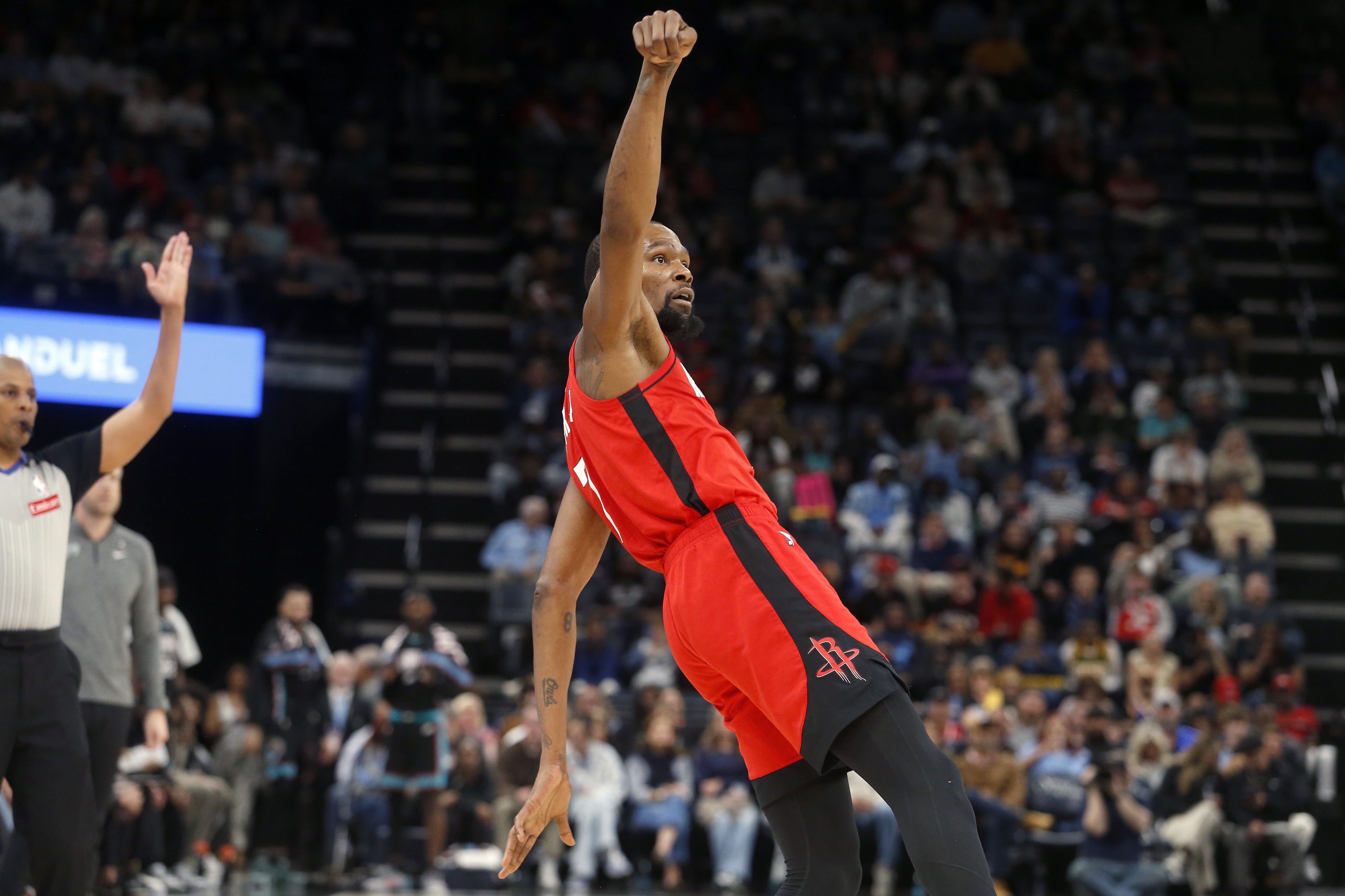 4月1日讯 NBA常规赛,火箭主场111-94大胜尼克斯。杜兰特出战34分钟,投篮18中10,三分7中4,罚球4中3,砍下27分6篮板8助攻2盖帽,仅2个失误,正负值+28。